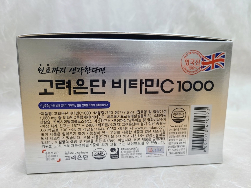 비타민C1000 원료는 가장 유명하고 믿을 수 있는 DSM 영국산으로, 원산지는 영국과 중국 두 나라뿐인데, 어떤 유명한 약사는 중국산도 괜찮다고 하더라고요. 하지만, 어디 그런가요. 믿을 수 있어야 안심할 수 있는데, 용품도 아니고 몸에 들어가는 원료로 중국산을 누가 믿고 먹을 수 있을까요? 그래서 더 안심이에요. 고려은단과 DSM은 원료를 독점 공급 체결을 하여서 100% 영국산 원료만 사용하고 있어요.