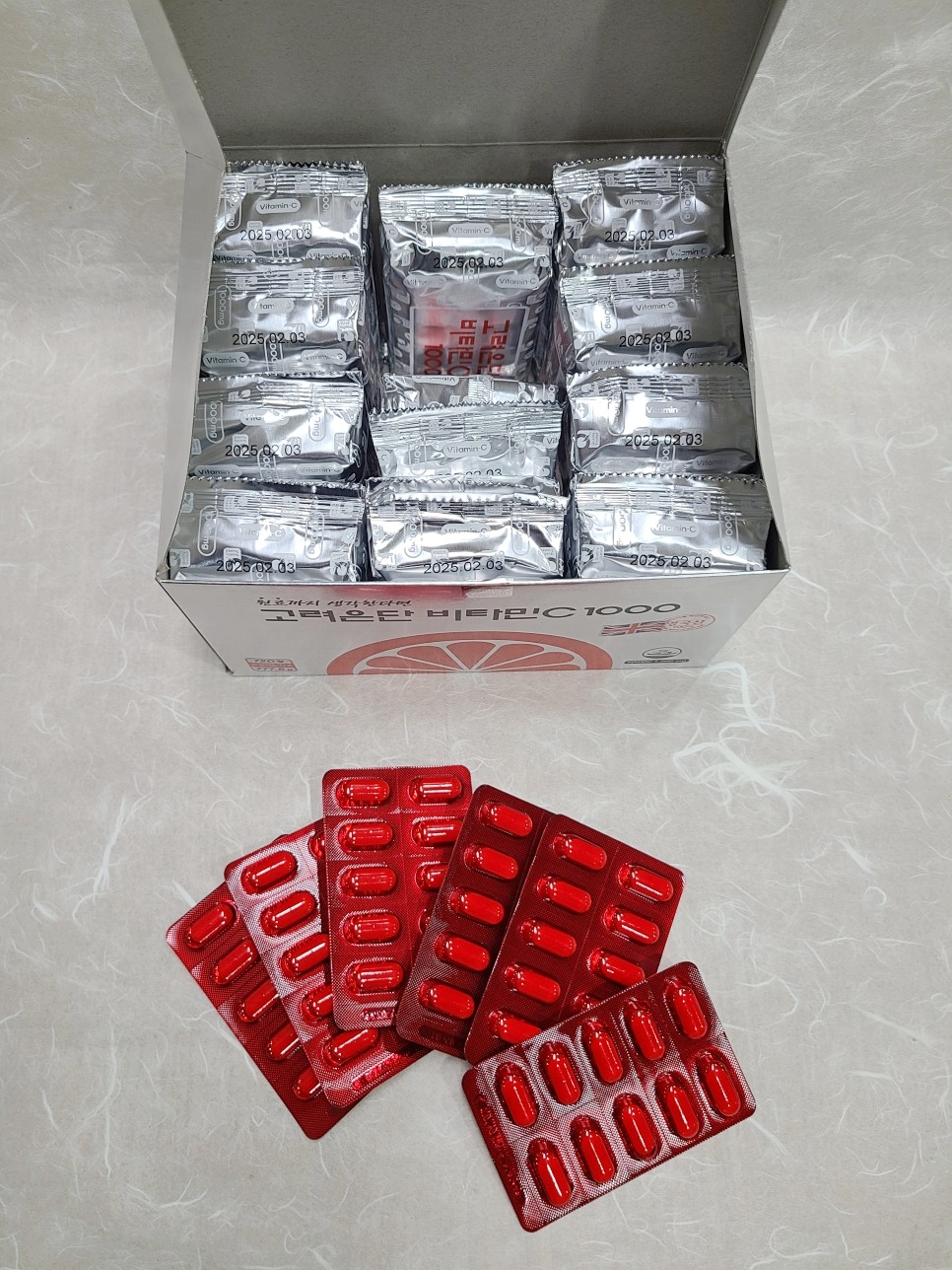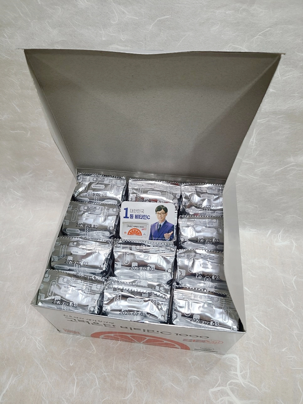 트레이드마크인 은지 봉투에요. 위생적이기도 하고, 습기나 온도 등에 영향을 차단해 줄 수 있어요. 여러 개의 PTP를 나눠서 은지 봉투에 담았기에 그늘진 곳에 보관해두고 다 먹을 때마다 새로 뜯어서 먹기가 좋아요. 지금은 추운 날씨여서 어느 정도는 괜찮지만, 따뜻하고 더운 날이 오면 보관에 신경을 써야 하기 때문에 이런 대용량에 은지 봉투는 탁월한 선택인 것 같아요.