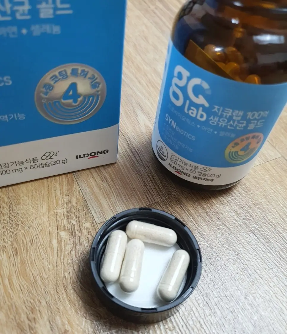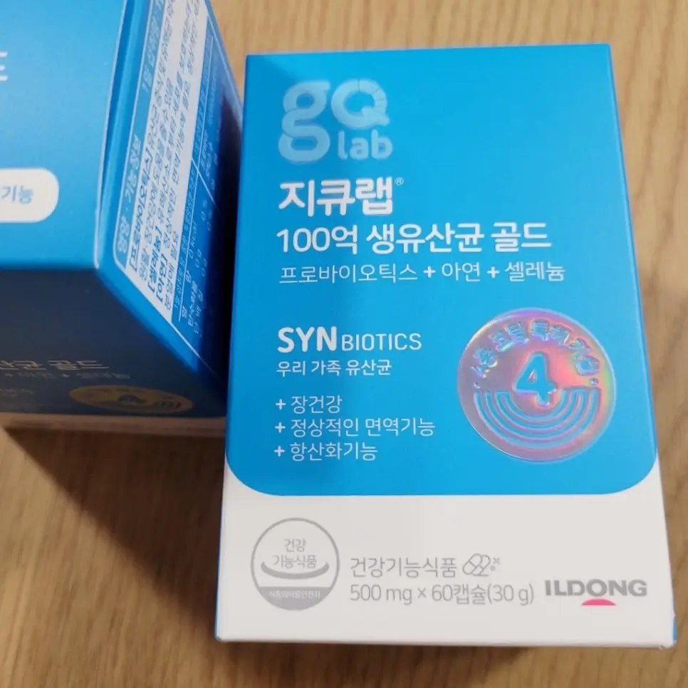 원빈을 메인 모델로 하고 있는 지큐랩 100억 생유산균 골드는 신(SYN) 바이오틱스입니다. 신바이오틱스는 프로바이오틱스와 프리바이오틱스를 결합한 형태이며, 장까지 살아남아서 도착할 수 있도록 일동제약의 특허 기술인 4중 코팅 유산균 기술로 정착력을 높였습니다.