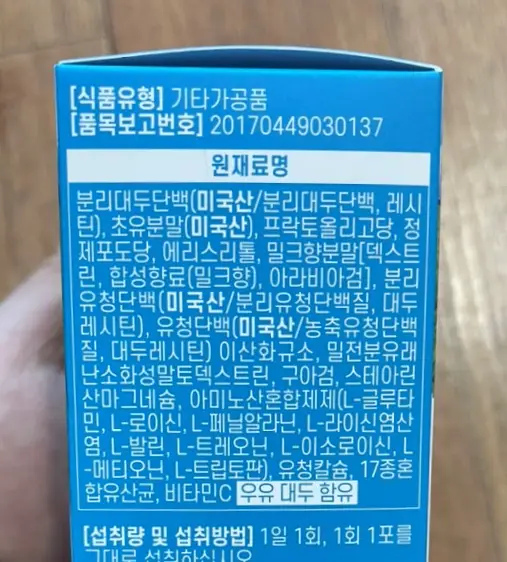 동물성 단백질로 우유단백, 유청 단백이 들어 있고, 식물성 단백질인 대두 단백을 적절하게 배합하였습니다. 반드시 필요한 아미노산이 부족한 식물성 단백질을 동물성 단백질과 효과적인 밸런스를 맞춰서 배합되어 있기 때문에 건강에 도움이 될 수 있습니다.
